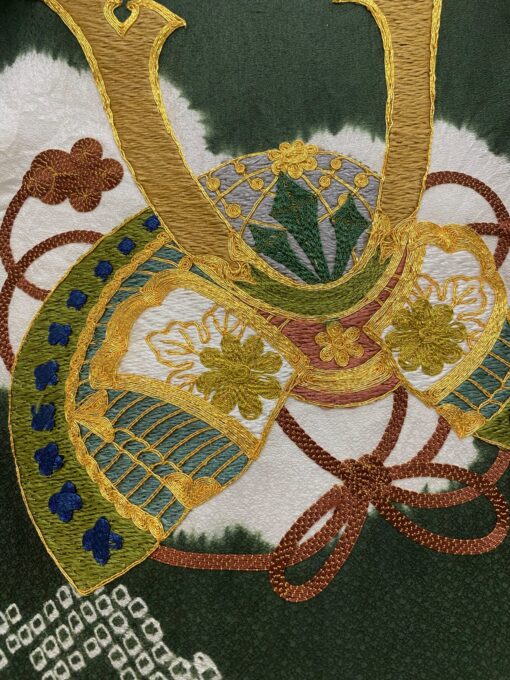 兜は健やかな成長や強さを願う吉祥文様として親しまれ、晴れの日にふさわしい存在感を添えています。